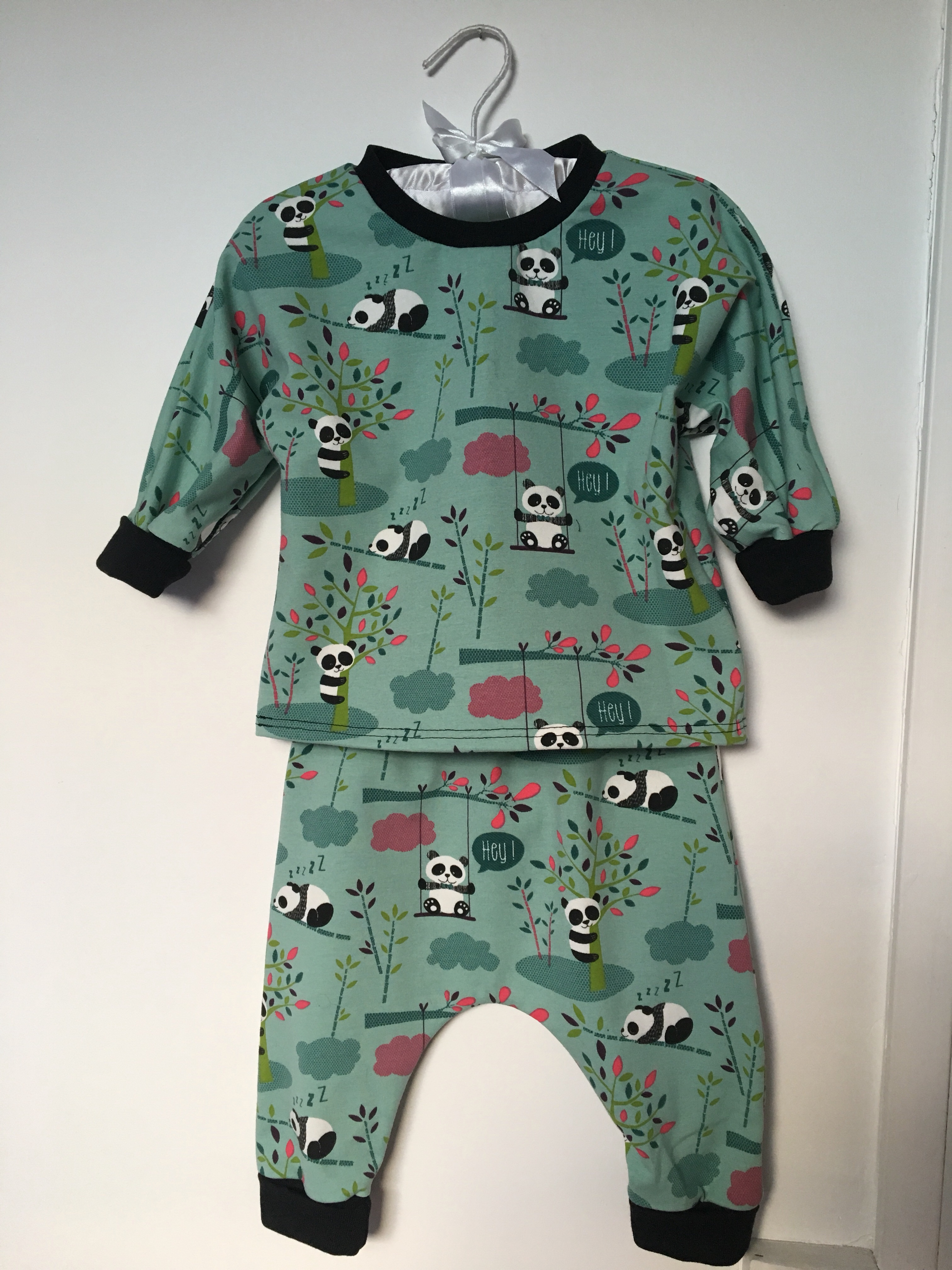 Le 1er que j’ai cousu est celui avec les pandas, j’ai d’ailleurs eu peur qu’il ne fasse trop fifille mais Héloïse m’a répondu : « mais non maman, les garçons aussi portent du rose ! » (ouf)