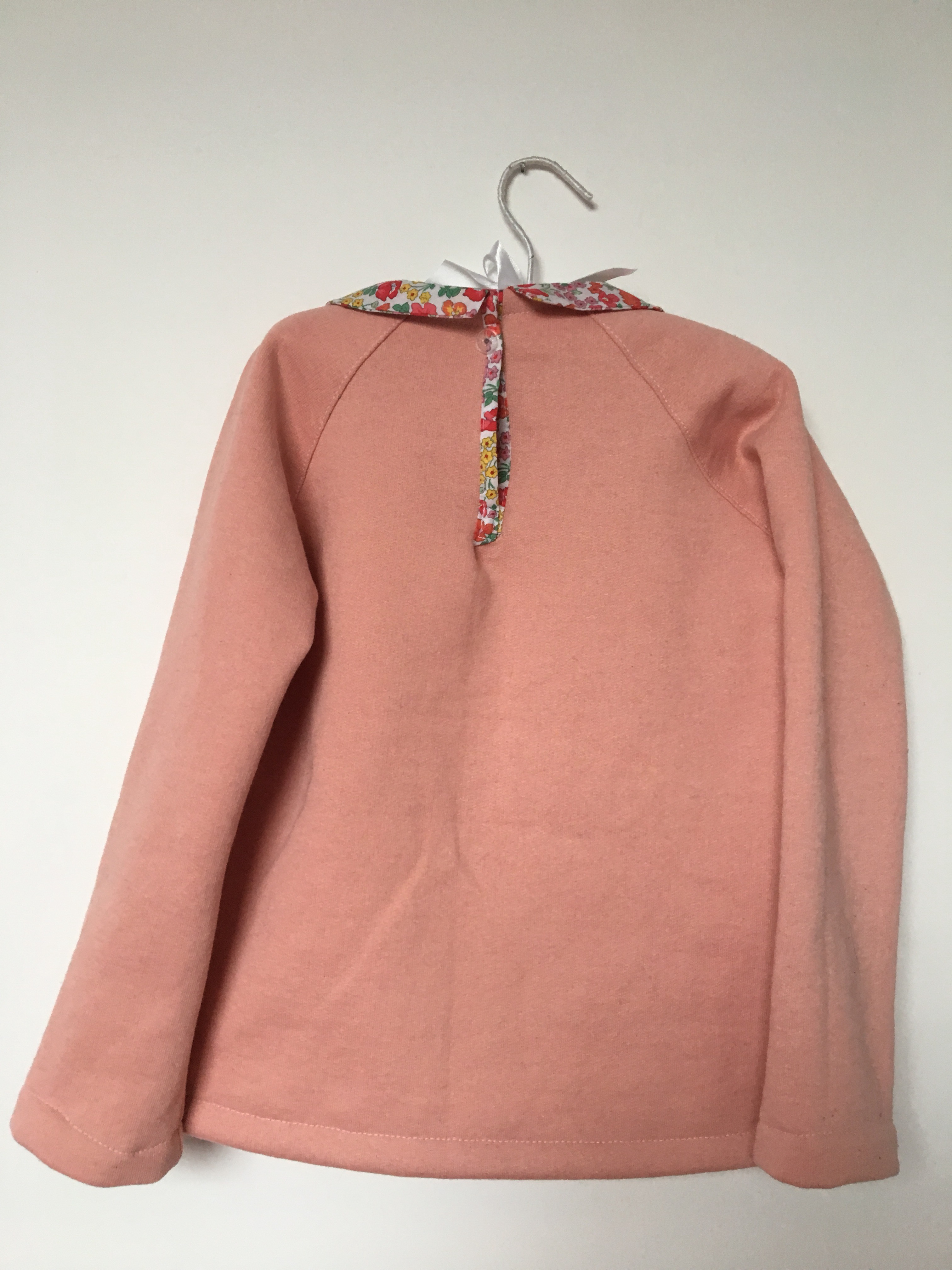 Elle n’est vraiment pas compliquée à coudre mais si c’était à refaire (ce qui n’est plus le cas puisque j’ai vendu le patron) je ne mettrai ni le col de devant ni celui de derrière. En fait elle est parfaite sans. Elle taille bien et est très pratique à porter pour ma puce en maternelle puisqu’elle est en sweat. Mais bon… « elle ne tourne pas maman » (on ne peut pas faire mouche à tous les coups).